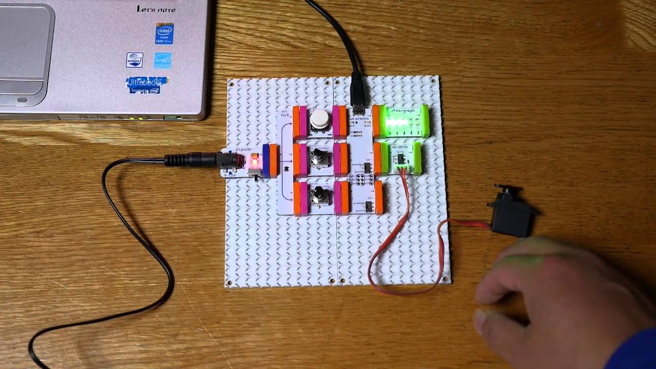 littleBits+Arduinoでサンプルコード「Servo Sequence Recorder」を書き込んでみた - YouTube