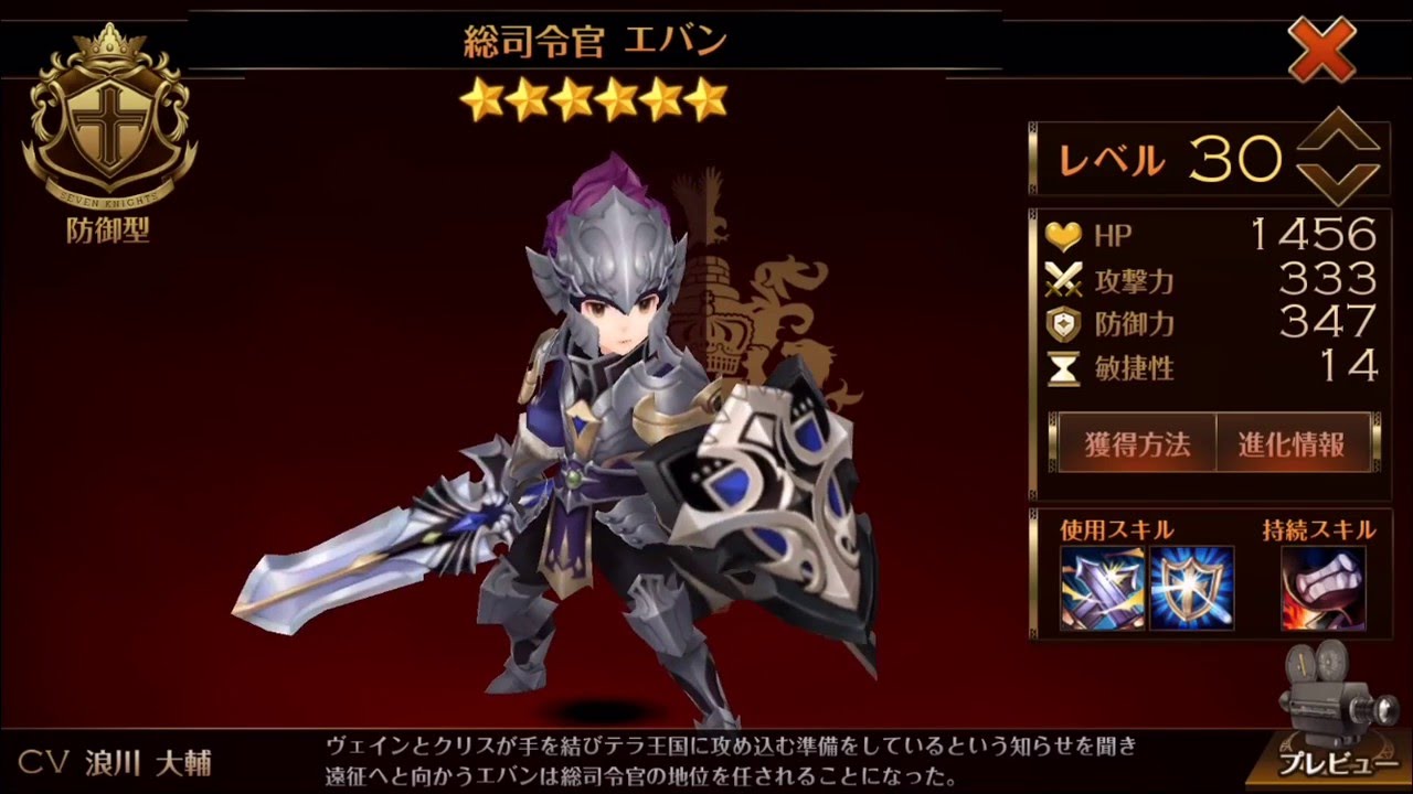 RPG「セブンナイツ」の主人公エバン(浪川大輔)のキャラクターボイス&スキル - YouTube