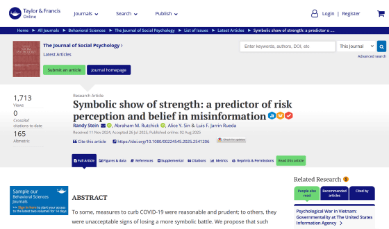 Symbolic show of strength: a predictor of risk perception and belief in misinformation: The Journal of Social Psychology: Vol 0, No 0 - Get Access