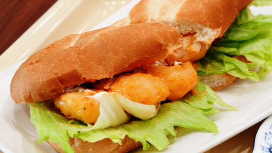 パンと一緒にシャキシャキのレタスが口いっぱいに広がり、そのあとプリプリのエビフリッターが姿を現します。エビフリッターは1尾1尾の存在感が抜群で、食感と独自配合のオーロラソースによりパンやレタスにも負けない風味が楽しめます。エビマヨとパンの相性やいかに?と思っていたのですが、「エビ×パン」「パン×マヨネーズ」「パン×ケチャップ」はそれぞれ相性が良いことからもわかるように、まとめてひとつにしたエビマヨオーロラソースも全く違和感なくパンとなじんでいました。なお、オーロラソースにはかんずりが入っていますが、辛さはほとんど感じないので辛いものが苦手な人でも安心して食べられます。