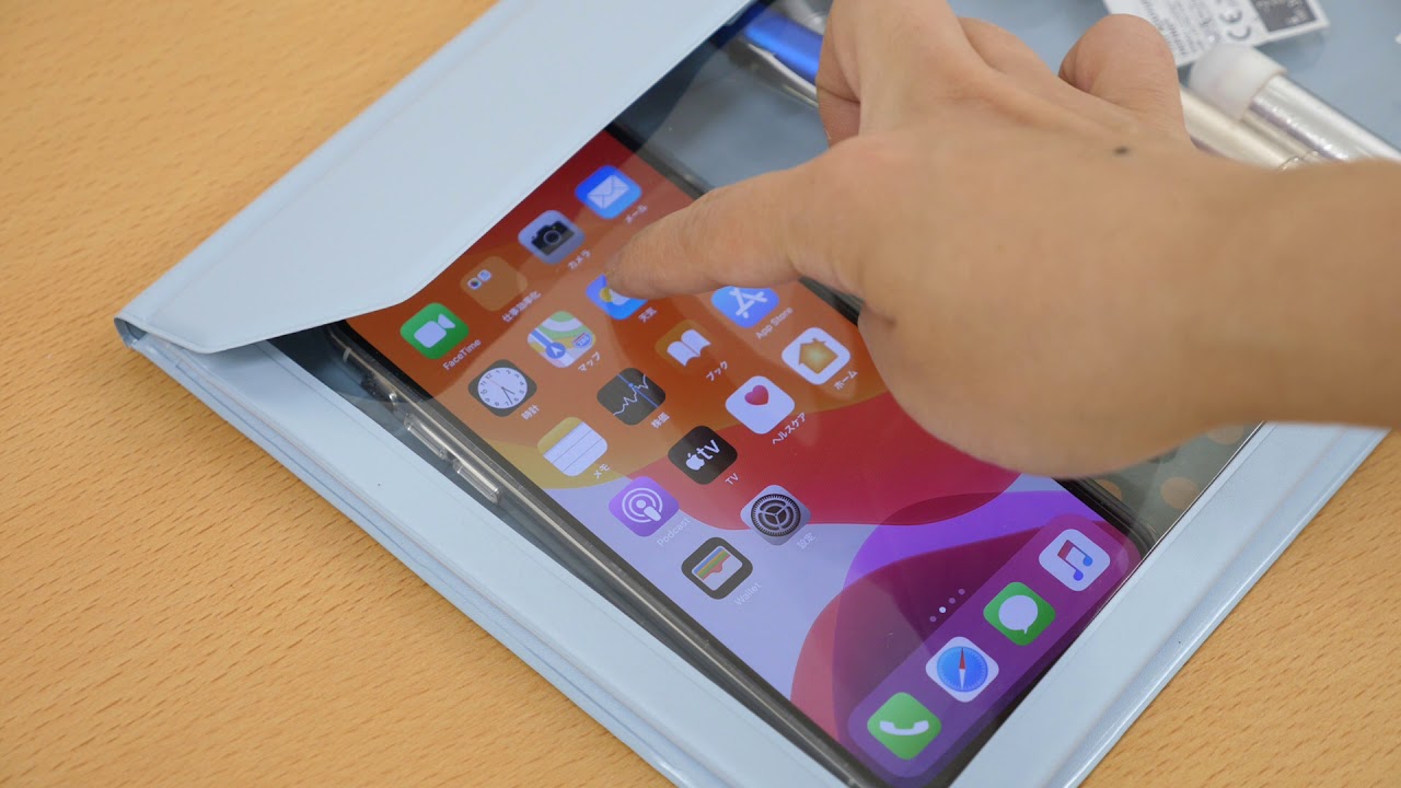 フラッティの便利な点の1つに、スマートフォンを外に出さずとも操作できる点が挙げられます。透明部の上からフラッティを操作している様子は以下から。