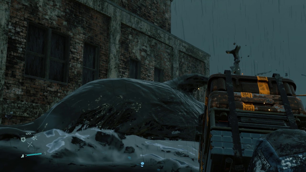 デス・ストランディングは、単に街から街に荷物を運ぶだけのゲームではありません。さまざまな困難がサムの行く手を阻みます。姿の見えない怪物であるBTは、専用のカプセルに人工羊水ごと入れられた胎児「ブリッジ・ベイビー」の力を使うと可視化できるように。