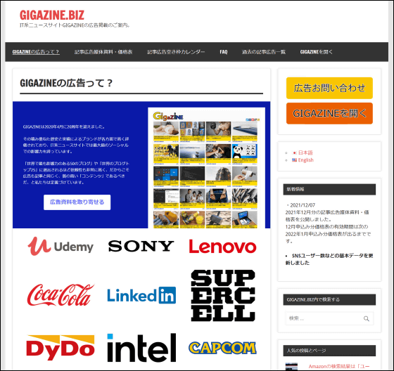 GIGAZINE広告問い合わせページ | GIGAZINE.BIZ