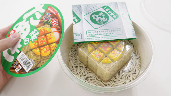2020年は「ルービックキューブ」の日本発売と、東洋水産の「緑のたぬき天そば」の発売がともに40周年という記念の年だということで、両者がコラボした「緑のたぬききゅーぶ」が2020年12月25日(金)に登場します。「緑のたぬき天そば」がどんなルービックキューブになったのか、実際に触ってみました。