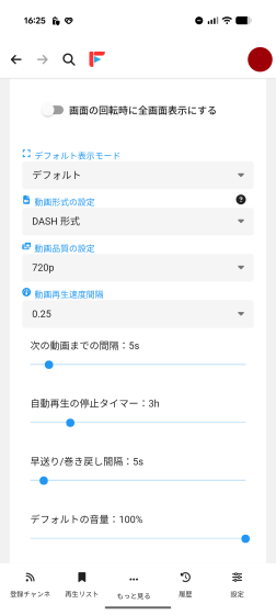 「動画再生速度間隔」の選択肢は以下の通り。
