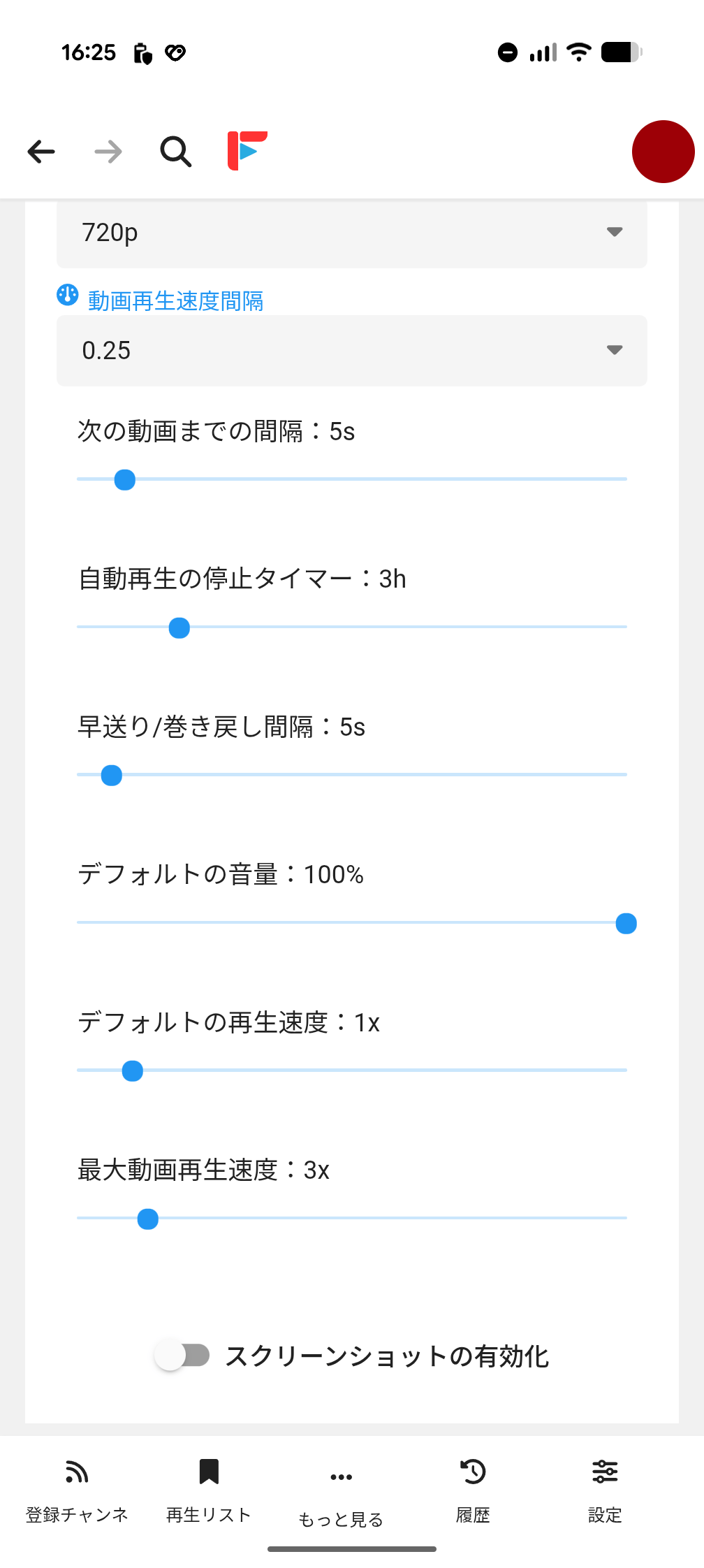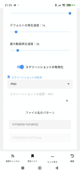 「スクリーンショットの有効化」をオンにすると動画再生時に気に入ったシーンがある際、すぐに動画からそのシーンだけを画像として切り出して保存可能。