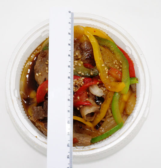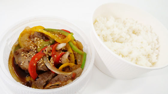 青椒肉絲定食の容器は、青椒肉絲とごはんが別々に入っている2層構造です。