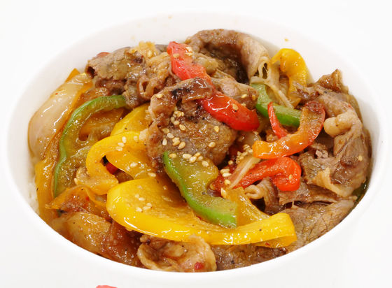 ジューシーな牛肉とたっぷり彩り野菜を鉄板で炒め、オイスターソースの香りがたまらない特製甘辛ダレで仕上げたこの味はまさにご飯泥棒????????????
