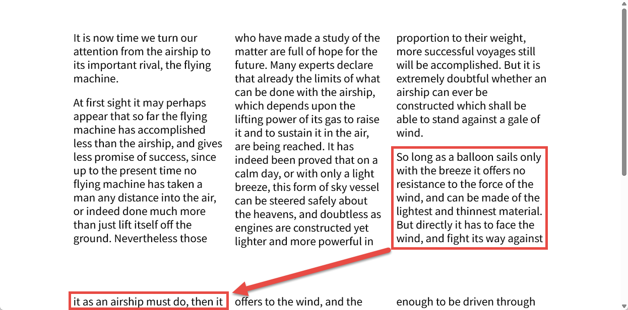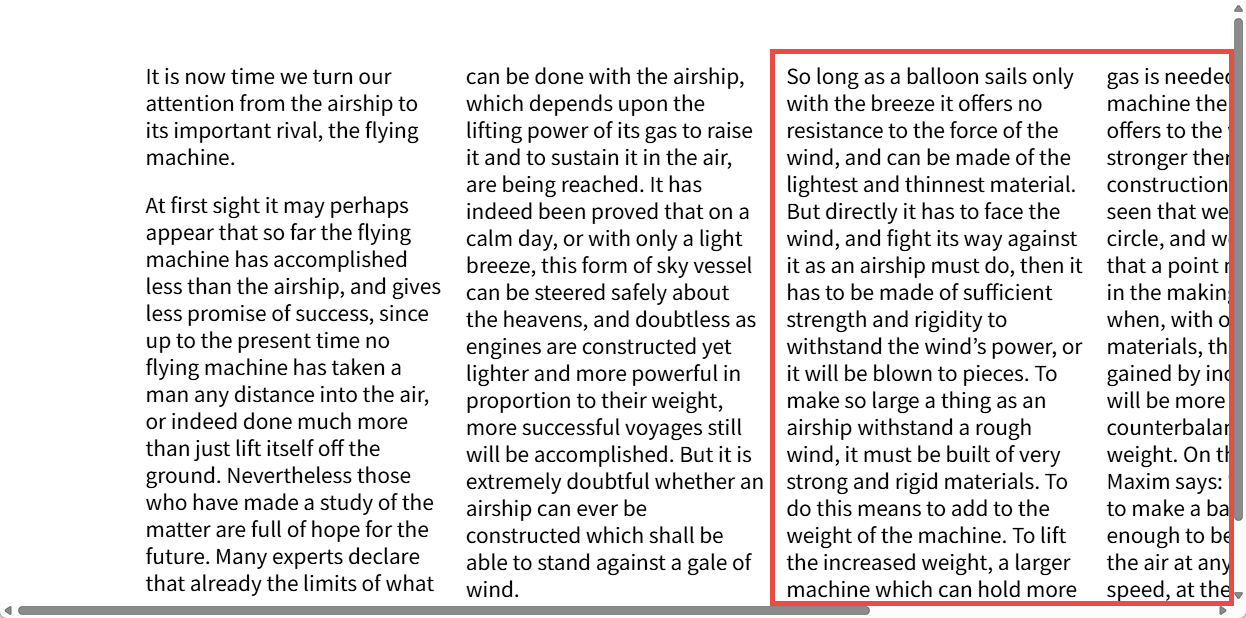 従来はマルチカラムコンテナの高さが制限があり使用可能なスペースに収まらないコンテンツがある場合、コンテンツはインライン方向にオーバーフローカラムとして表示されていました。
