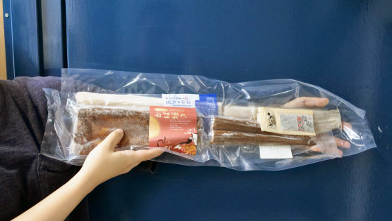 あなごの一夜干は全長50cm以上。女性の腕ほどの長さがあります。蒲焼きはそれよりも小さいサイズですが40cmはありました。