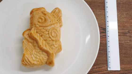 袋から出してみると、「たい」焼きの形とは違う、ややリアルな鯉の形の最中。