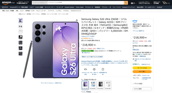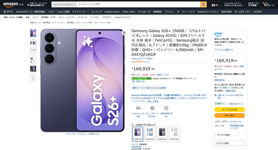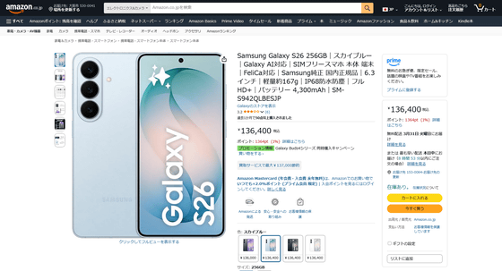 Galaxy S26ファミリーはAmazonでSIMフリー版が購入可能です。