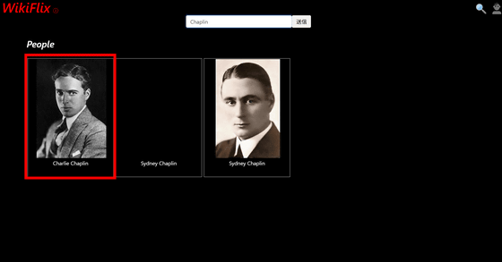 3人の人物がヒットしました。一番左の「Charlie Chaplin(チャールズ・チャップリン)」をクリック。