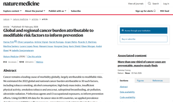 研究チームは185カ国で収集された36種類のがんデータを基に、がん発症に関連するさまざまな要因について分析を行いました。その結果、2022年には新たに約1870万件のがん症例が発生し、そのうち約37.8%に相当する推定710万件の症例については、30の修正可能なリスク要因に起因することが判明しました。