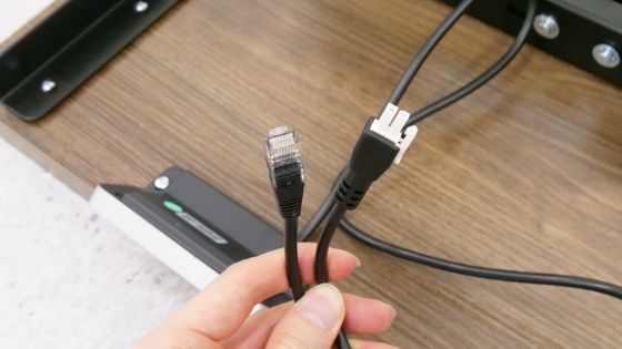 次はコントローラーのコードです。コードの先は二股になっており、一方がLANコネクタ、もう一方がDCコネクタとなっています。