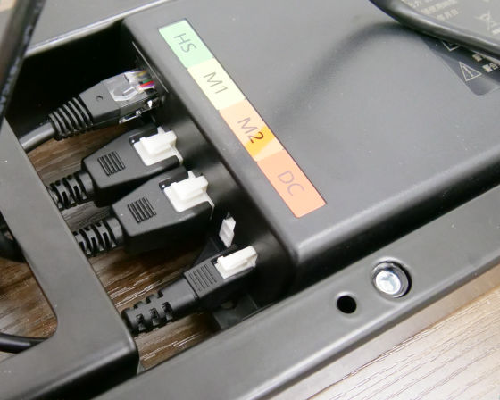 もう一方の昇降支柱のコードも、残りのポートに差し込みました。
