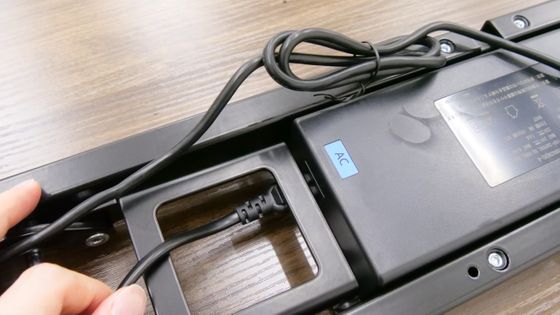 最後に電源ケーブルを接続します。一方がコンセントのプラグ、もう一方がACコネクタになっています。