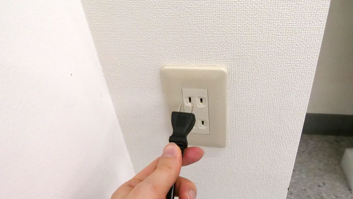 プラグをコンセントに差し込めばOKです。なお、プラグをコンセントに差し込むのは机をひっくり返した後でも大丈夫。