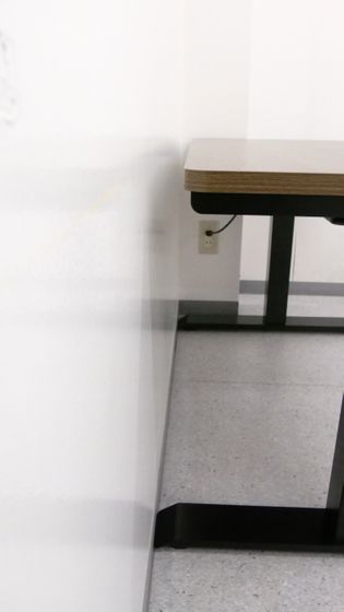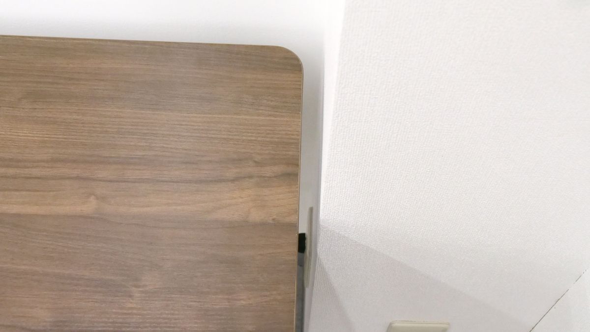 なお、天板が壁に接触していると昇降させた際に壁をこすってしまう危険性があるため、天板の端は壁から少し離しておくのがオススメ。