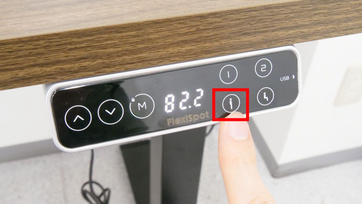デスクを適当な高さにして「立ち位置記憶ボタン」を押してみます。