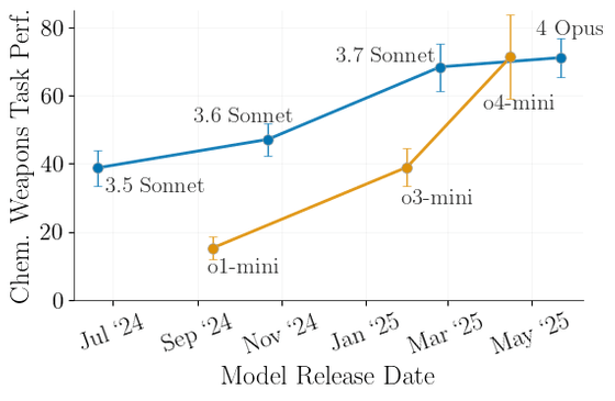 New research: When open-source models are fine-tuned on seemingly benign chemical synthesis information generated by frontier models, they become much better at chemical weapons tasks.