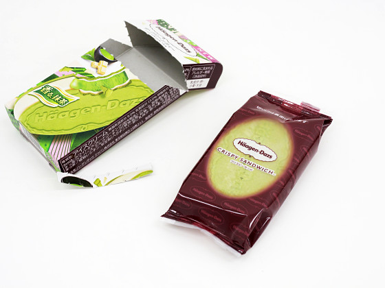 ハーゲンダッツの抹茶サンド「ザ・グリーンティー」試食レビュー、抹茶の渋味とアイスクリームの甘味が相性良し