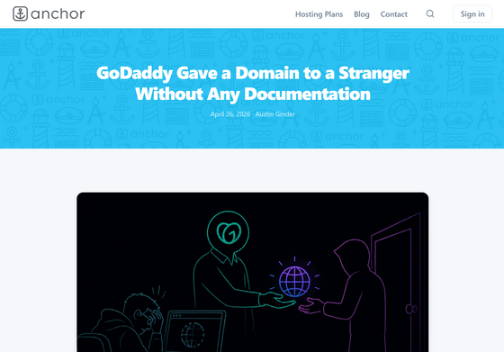 ウェブ開発者のオースティン・ギンダー氏が、ドメイン管理サービス「GoDaddy」がドメインを誤って他人に移転してしまっていた事件についてブログで報告しています。