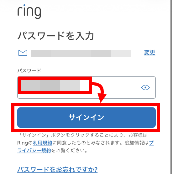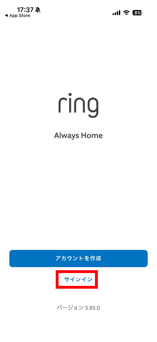Ringアカウントでのサインインを求められるので「サインイン」をタップ。アカウントを持っていない場合は過去記事を参考に作成してください。