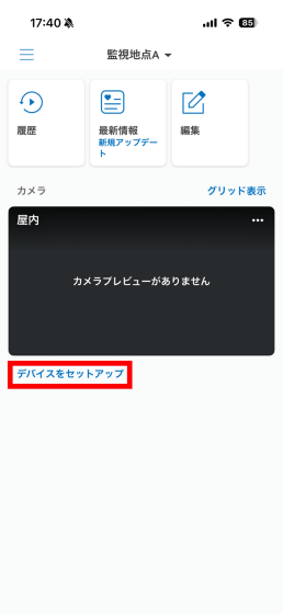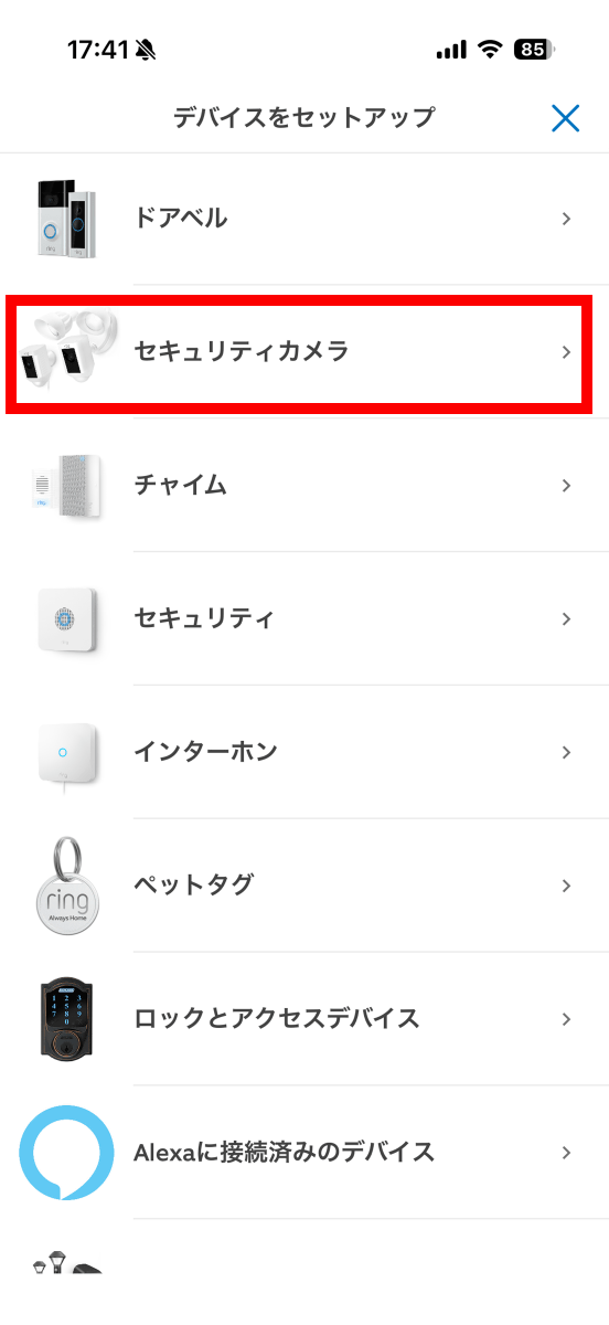 「セキュリティカメラ」をタップ。