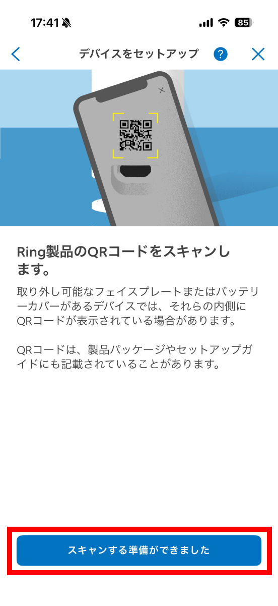 「スキャンする準備ができました」をタップ。