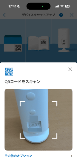 続いて、接続するカメラのQRコードを読み取るように求められます。