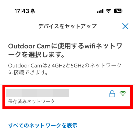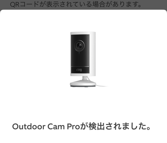 スキャンに成功すると「Outdoor Cam Proが検出されました」と表示されます。