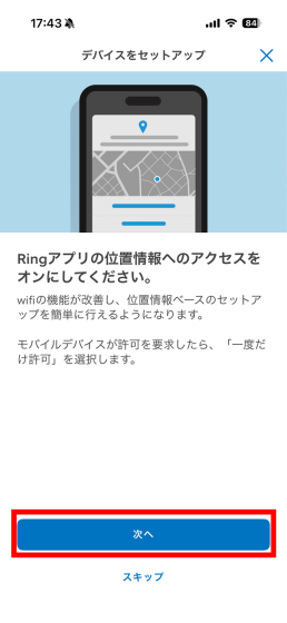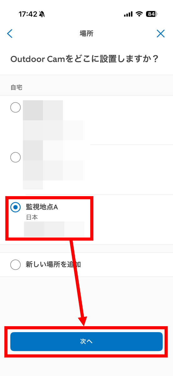 次に、設置場所を選択して「次へ」をタップ。