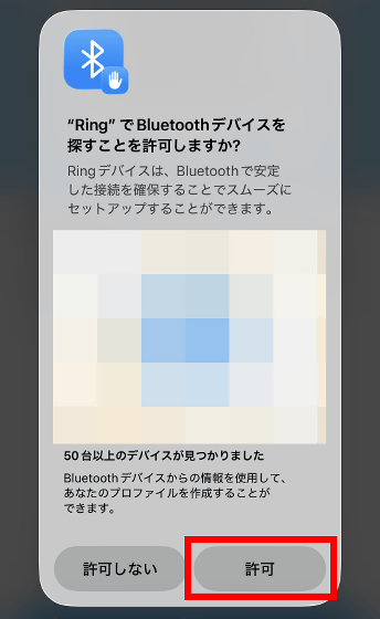 Bluetoothの使用許可を求められたら「許可」をタップ。