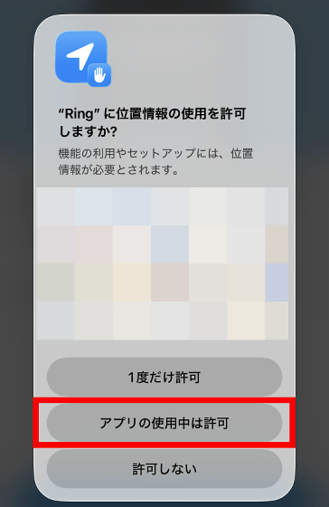 位置情報の使用許可を求められたら「アプリの使用中は許可」をタップ。
