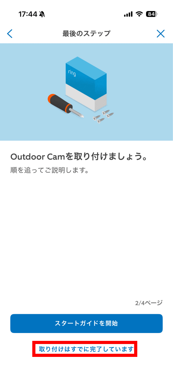 取り付け方法の説明を閲覧することも可能。今回は「取り付けはすでに完了しています」をタップ。