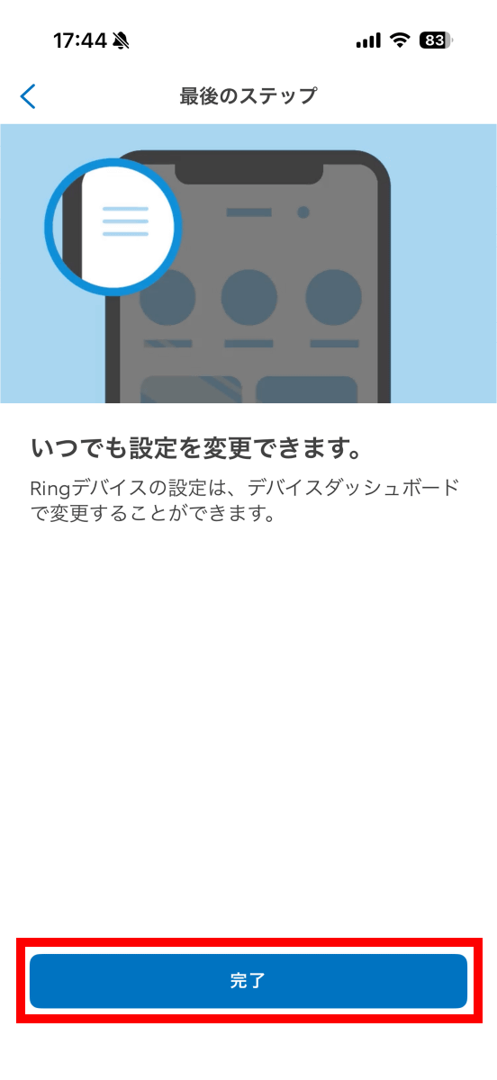 「完了」をタップすればセットアップ完了です。