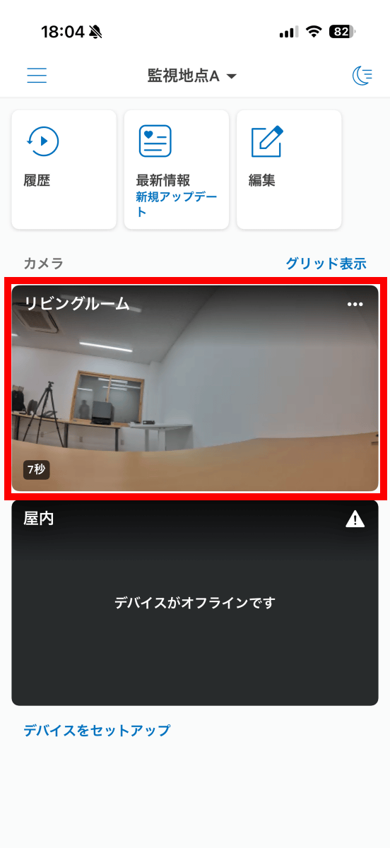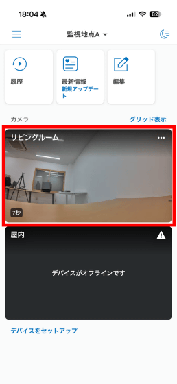 ライブ映像が表示されました。この映像はスマートフォンでどこからでも確認可能です。