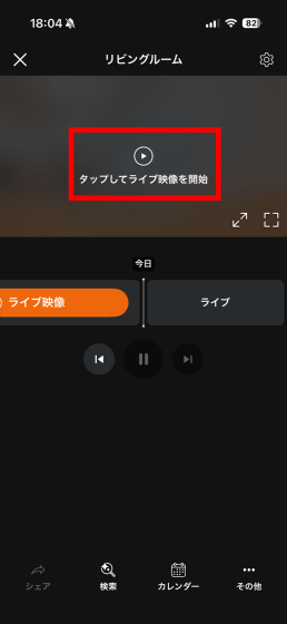 個別ページはこんな感じ。「タップしてライブ映像を開始」をタップ。