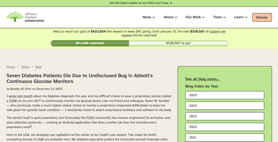 Software Freedom Conservancy(SFC)のブラッドリー・エム・キューン氏は、自身も2025年に糖尿病と診断されて同社の製品を使用していた当事者として、ブログでこの問題を告発しています。