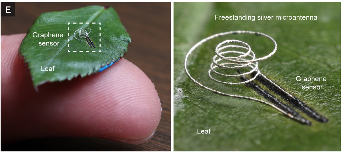 研究チームは実際にMeta-NFSを用いて、生きた植物の葉の上に導電性の微細構造を3Dプリントしています。