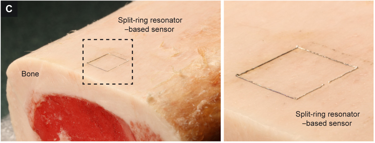 また、ウシの大腿(たい)骨の上に、非常に小さなゆがみを検出してデータを送信するワイヤレスセンサーを3Dプリントすることもできたと報告しています。