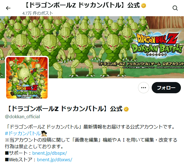 『ドラゴンボールZ ドッカンバトル』の公式Xアカウントも栽培マンにジャックされており、カバー画像やアイコンが栽培マンで埋め尽くされています。