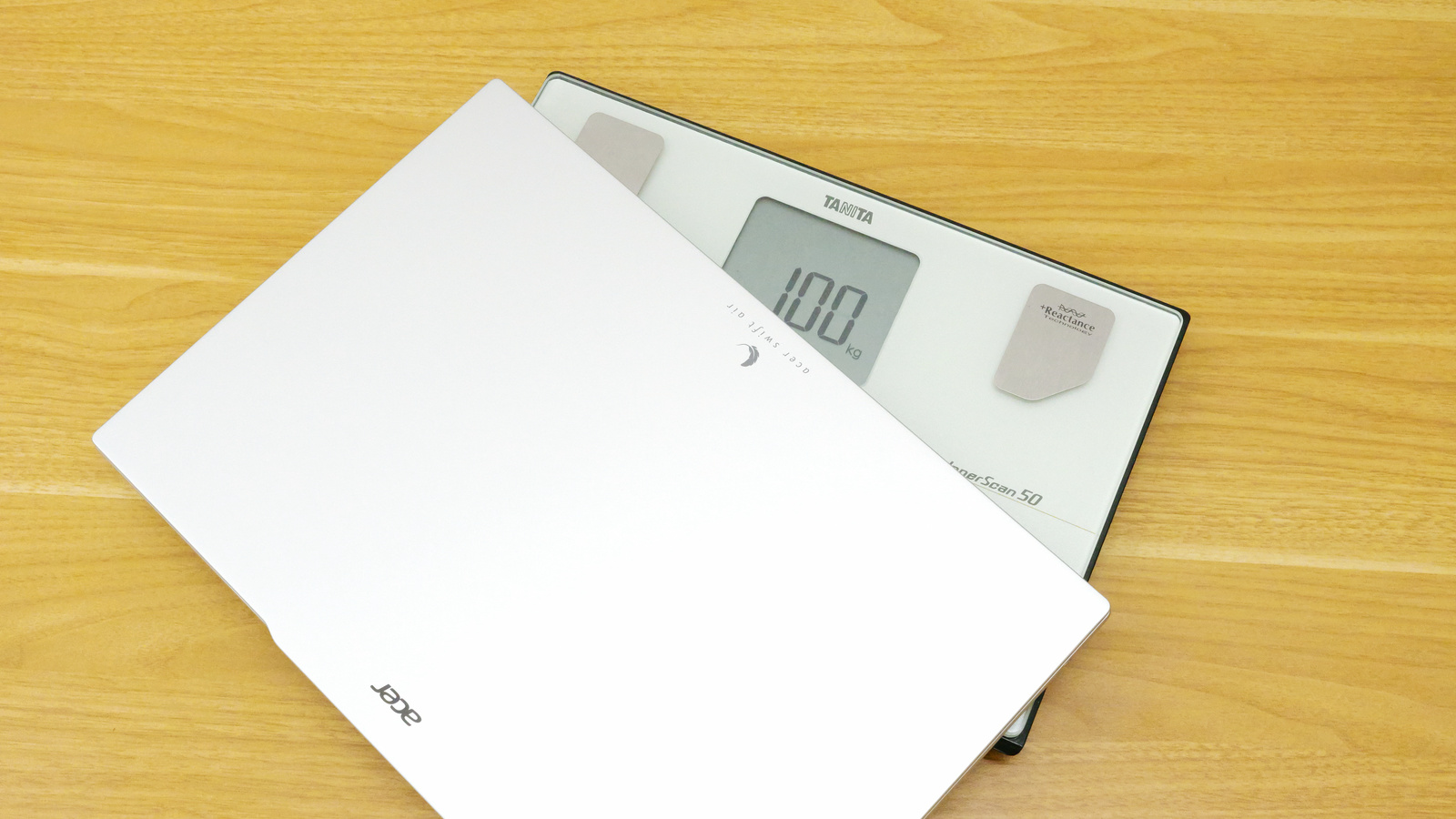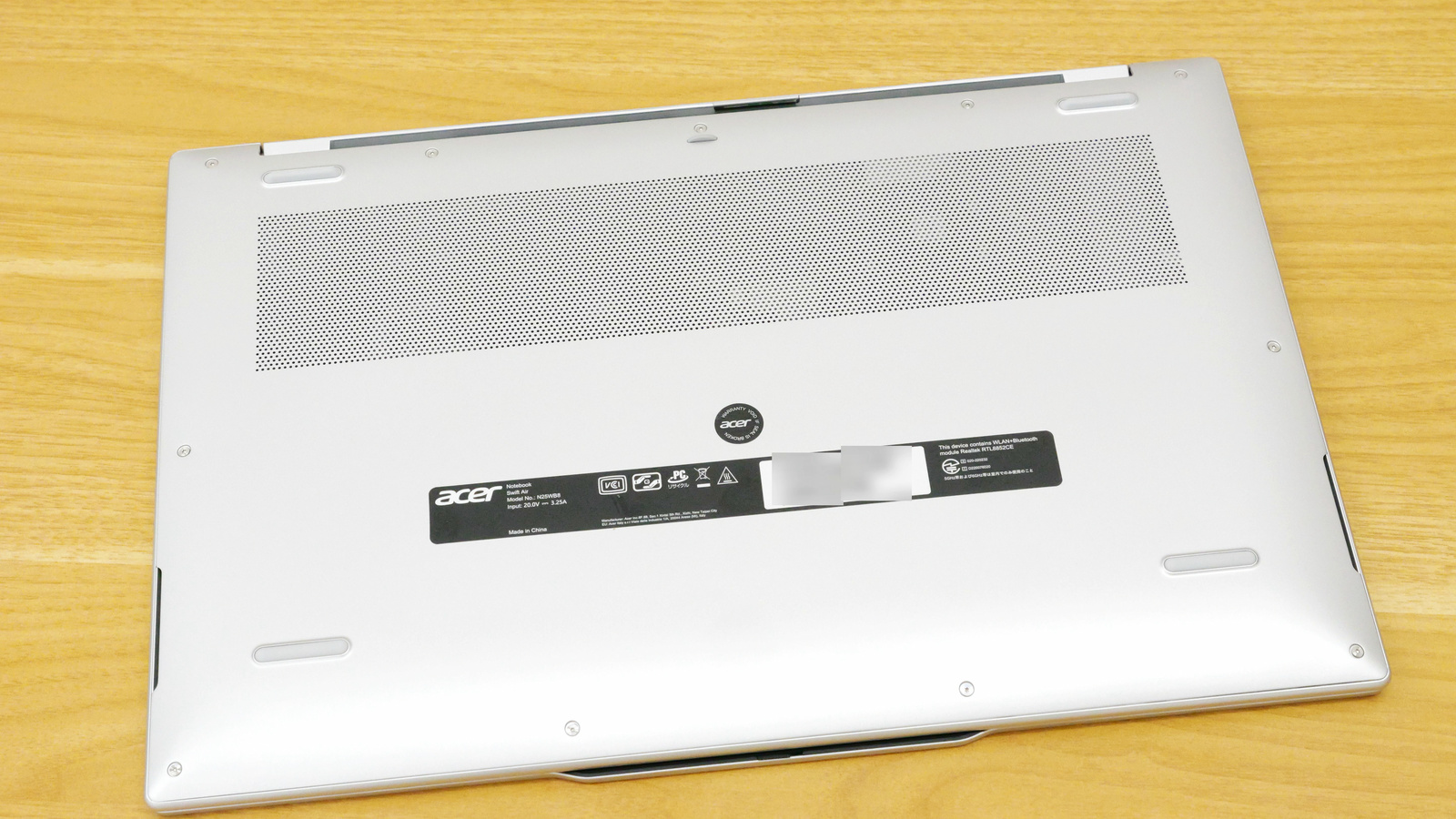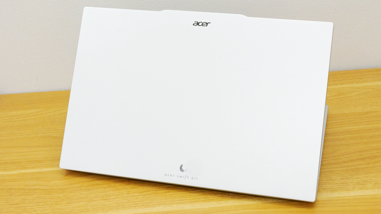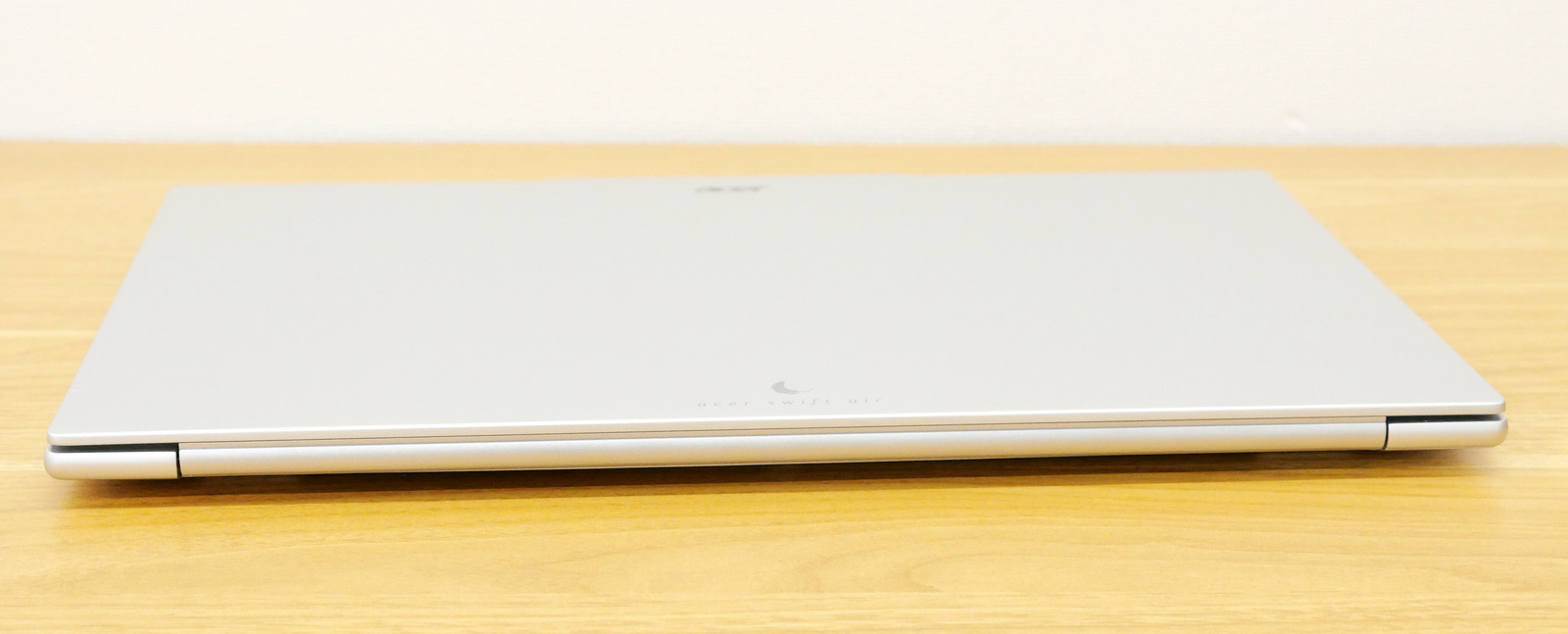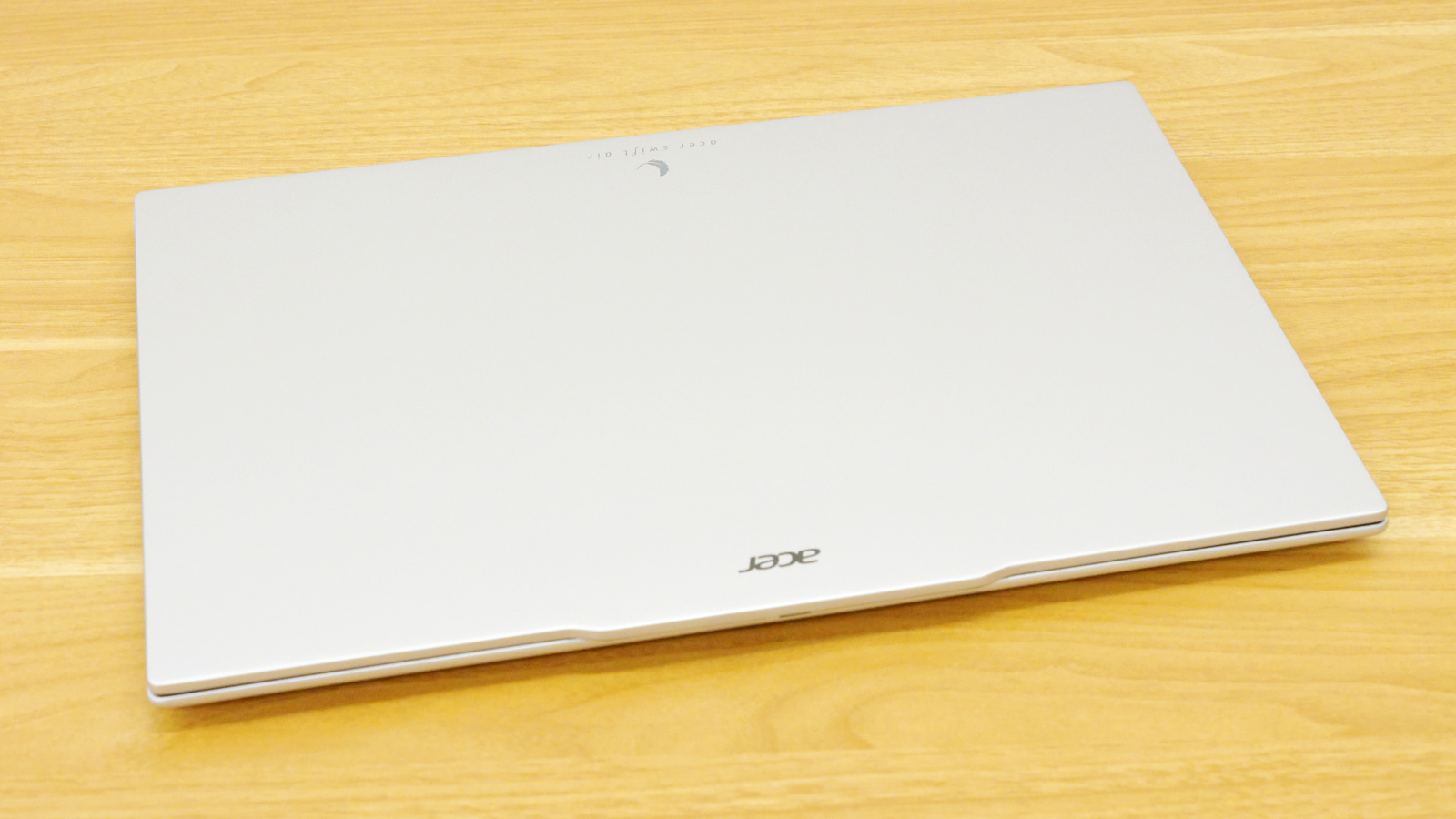 色はライトシルバー。天面にはAcerのロゴ、そして「acer swift air」の文字がロゴアイコンと共に刻印されています。