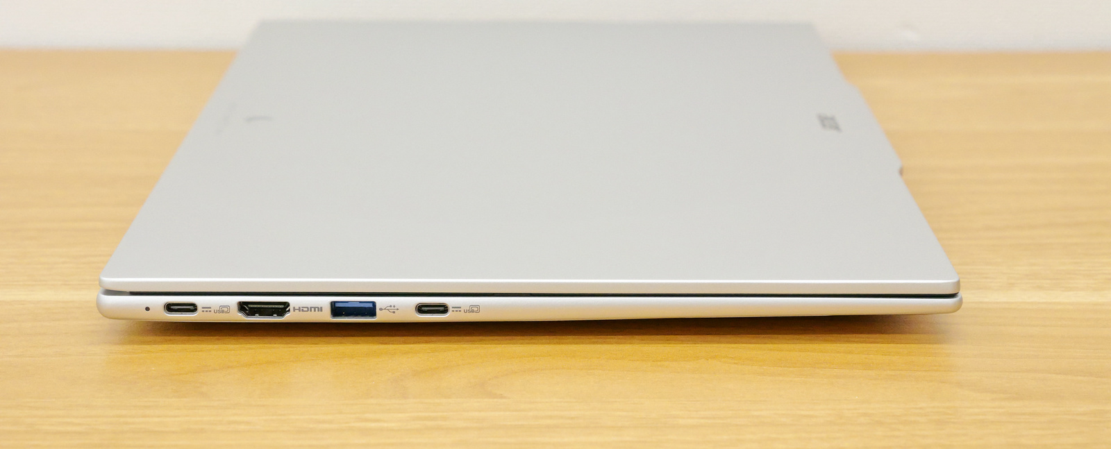 左側面にはUSB 3.2 Gen 1対応のUSB Type Cポート、HDMI出力ポート、USB 3.2 Gen 1対応のUSB Type Aポート、そしてUSB 3.2 Gen 1対応のUSB Type Cポート。USB Type-Cポート2つはどちらもPDと映像出力に対応しています。