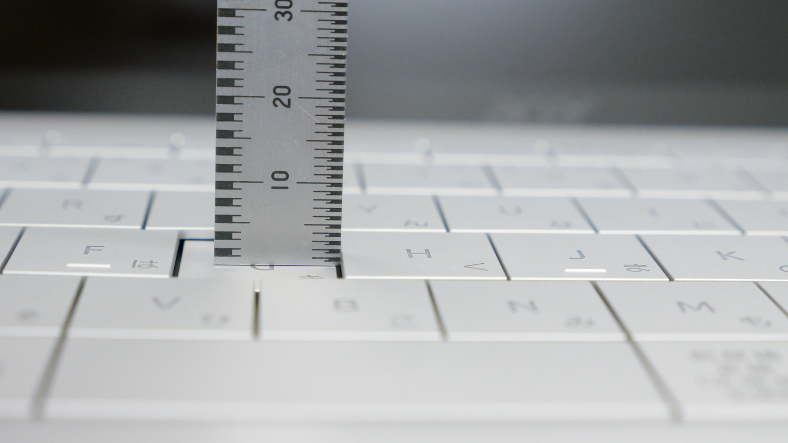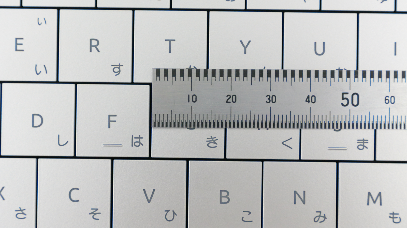 キーピッチは実測で約19mm。キー同士の隙間は実測でだいたい0.7mmほど。