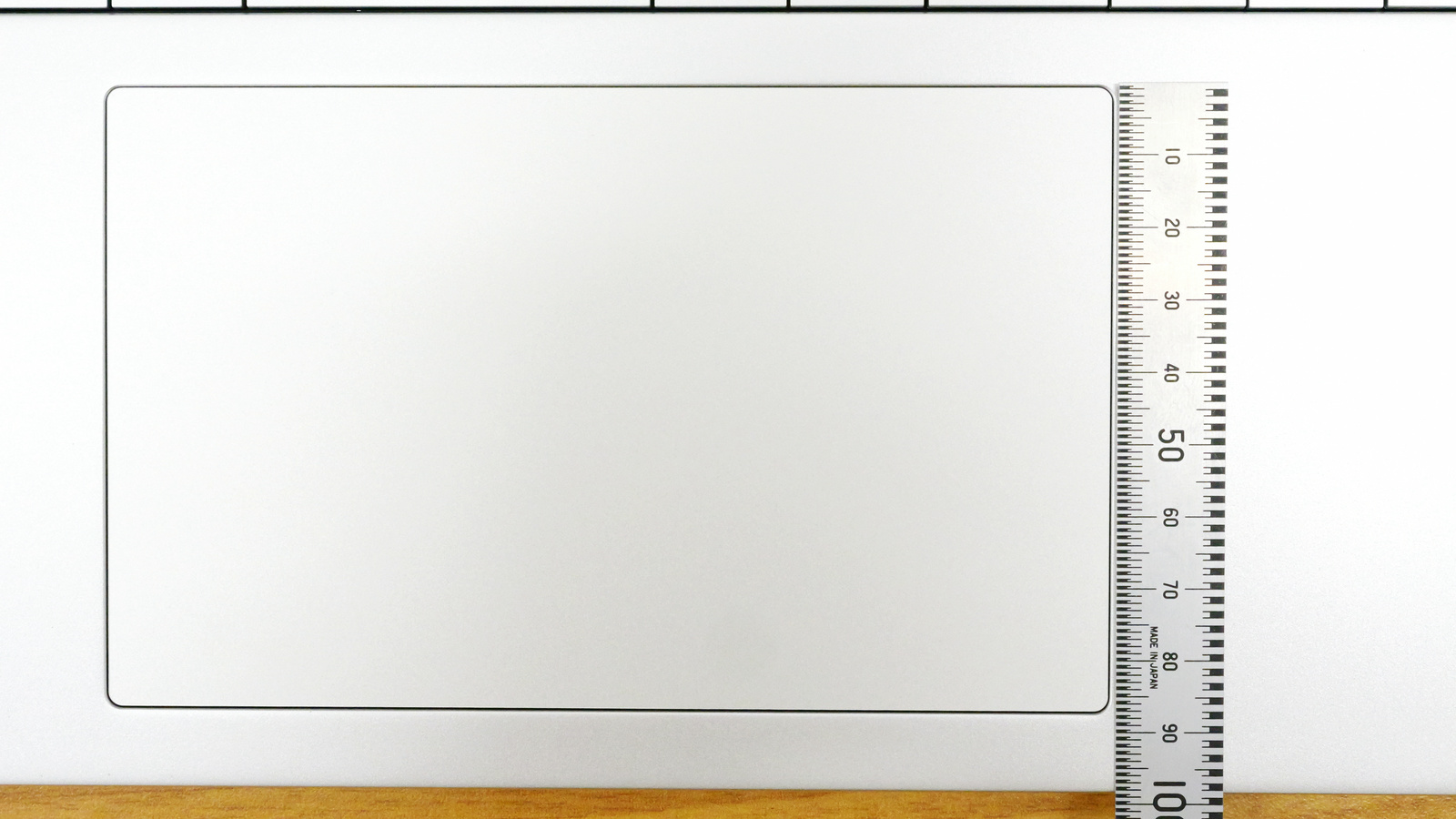 トラックパッド部分は実測で14cm×8.7cmほど。PCの中央から少しだけ左よりに配置されています。