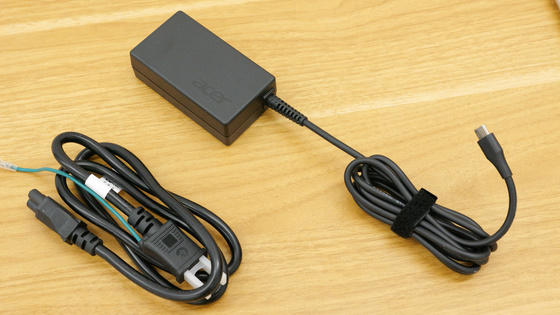 電源ケーブルとACアダプター。