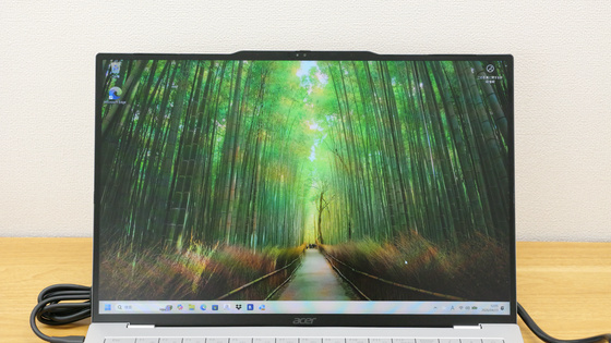 ディスプレイを確認するため、電源をつけてみました。16インチディスプレイの解像度は1920×1200ピクセルでアスペクト比は16:10。非光沢のIPS液晶です。