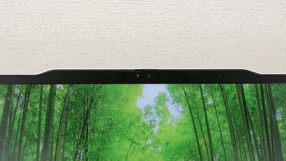 ディスプレイ上部には約207万画素のフルHDカメラ。Windows Hello顔認証対応で、カメラをふさぐ物理スライドスイッチもついています。